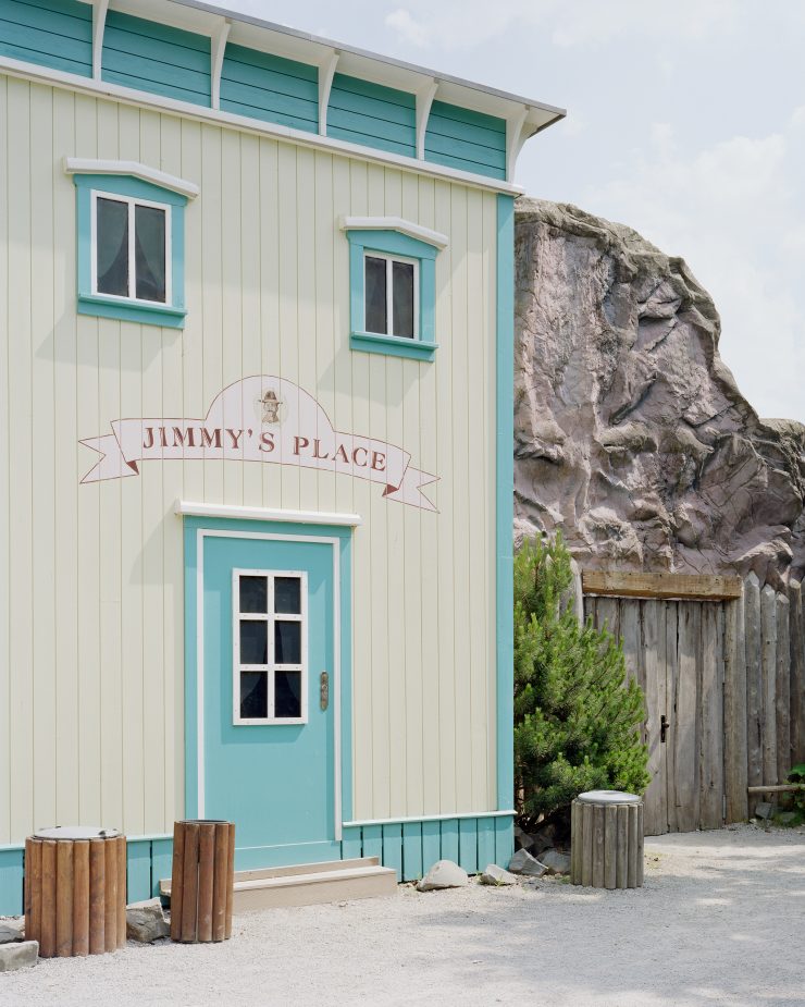 … gehört in eine Reihe von Arbeiten, die in Freizeitparks, Filmstudios, Außensets und militärischen Übungsgeländen entstanden sind. Dabei gilt die Aufmerksamkeit der Schnittstelle von Wirklichkeit und Täuschung. Die fehlende Substanz ist ein verbindendes Glied dieser Scheinwelten und wird in den Arbeiten immer wieder zum Thema.
