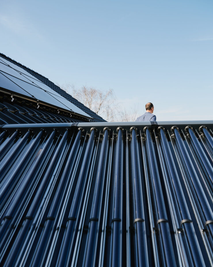 Für eine Bilanz ist es noch zu früh. Schließlich ist die Photovoltaik-Anlage erst Ende November freigeschaltet worden. Und seitdem hat die Sonne über Witten an der Ruhr noch nicht allzu oft ihre volle Kraft entfaltet. Zudem stehe das Haus nicht optimal, räumt Dirk Kannacher ein, als wir vor die Tür treten, um die Konstruktion zu besichtigen: Die Dachfläche neigt sich ziemlich genau nach Westen, die andere gen Osten. Und die Sonne? Kannacher blickt in den wolkenverhangenen Himmel, kneift die Augen zusammen und meint dann trocken: »Da irgendwo im Süden.«